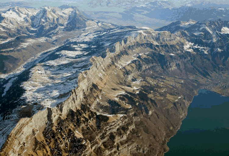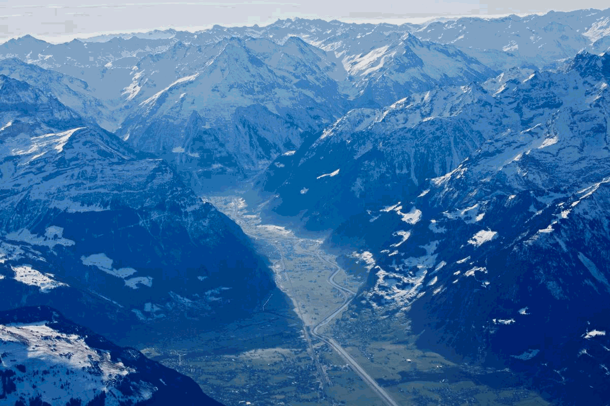 Die Sägezahnstruktur der „Churfirsten", Walensee und Walenstadt Mit der Annäherung an die Züricher Kontrollzone wechselt nur der Akzent unserer netten Controlerinnen. Die freundliche französische Tonfolge wird von einem für deutsche Gehörgewohnheiten leichtverständlichen Englisch abgelöst. Doch die bevorzugte Begleitung bleibt uns erhalten. Wir kreuzen die frequentierte Nord-Süd Flugstrasse „Alpha 9" und erhalten die Genehmigung für die von uns gewünschte FL 140. Der Vierwaldstätter See liegt nun schon hinter uns. Obwohl sich zunehmend eine leichte Zirrus Bewölkung aufbaut bleiben die Sichten traumhaft. Das Matterhorn ist die leichte, eindeutige Orientierung.